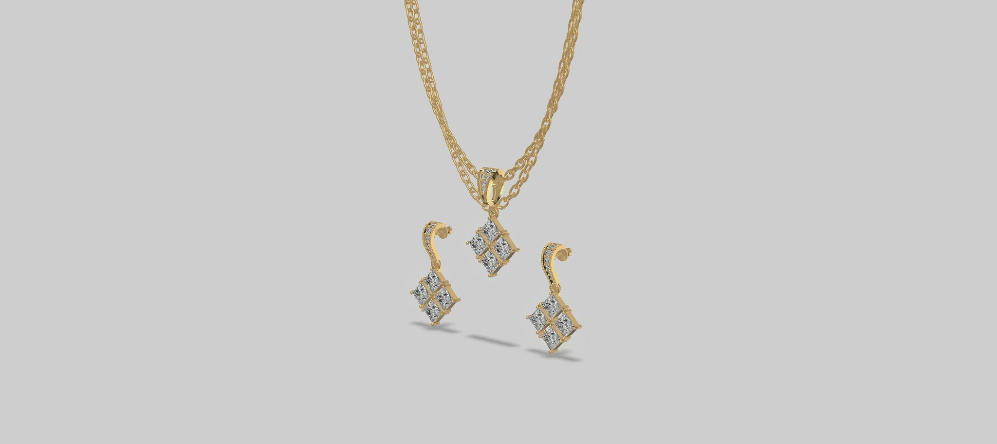 Embrace contemporary elegance with the Princess Cluster chain set Trio, featuring shimmering square?based pendant . It has versatile wearability Perfect for everyday elegance or statement occasions, the trio arrangement allows wearers to layer or swap pendants to suit their mood and outfit.