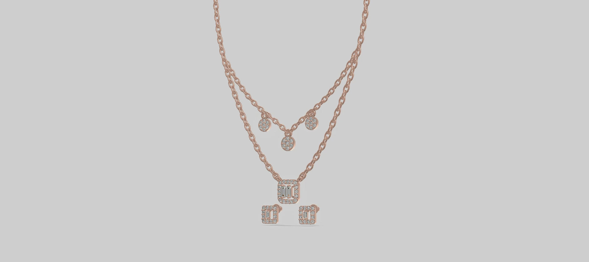 Create a stunning visual narrative with the Radiant Duo Lariat & Halo Layered Necklace, a beautifully designed piece that masterfully blends spaghetti chain layering, lariat-like pendant structure, and geometric gemstone sophistication.