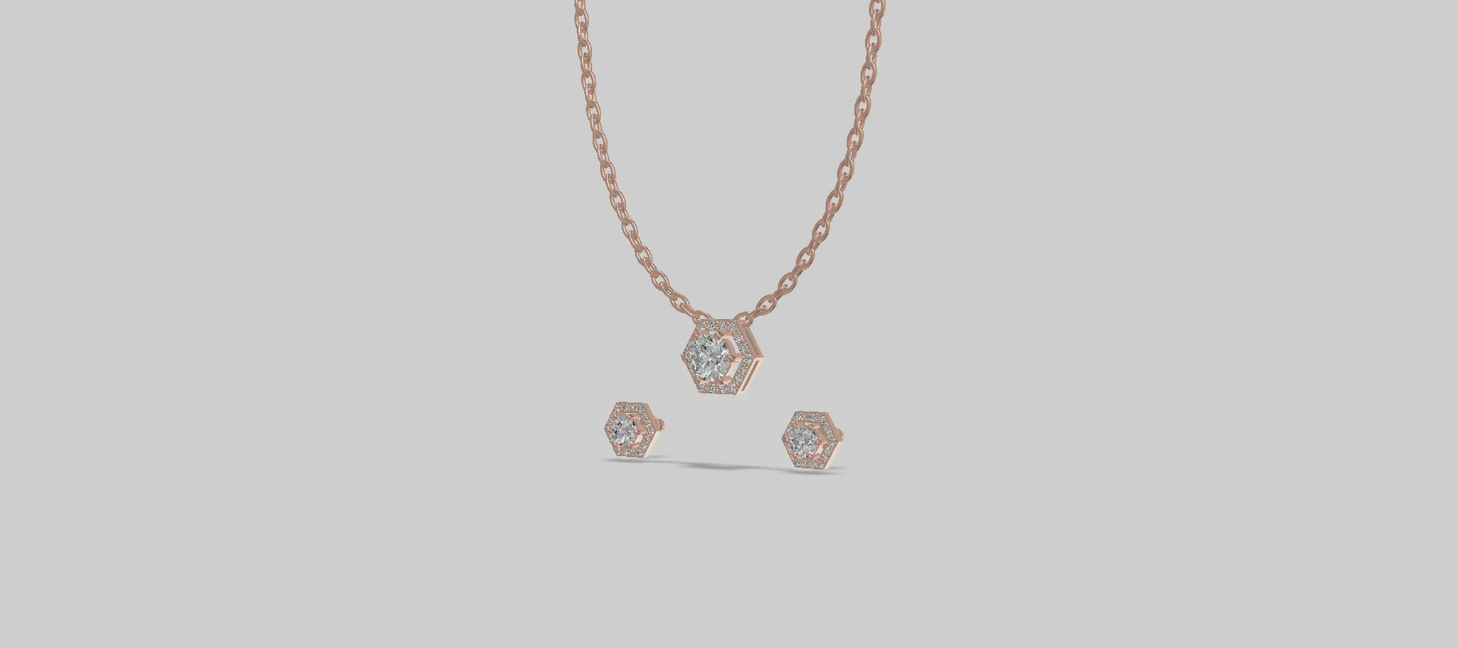 Showcasing bold geometry and vibrant elegance, the Ruby Hexa-Halo Trio Necklace features a striking trio of hexagon-framed rubies, beautifully set against warm rose-gold for maximum impact and sophistication.Deep red rubies paired with bright diamonds create a luxe, romantic palette suitable for both daywear and evening elegance.